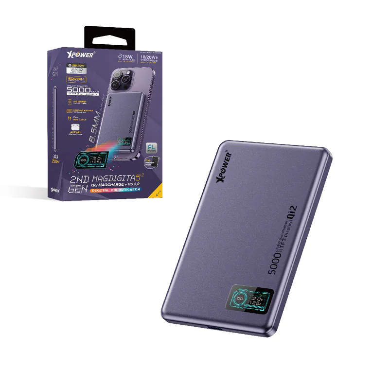 - XPower 5000mAh Magsafe Power Bank with LED Display - Purple XPower 5000mAh Magsafe Power Bank with LED Display - Purple