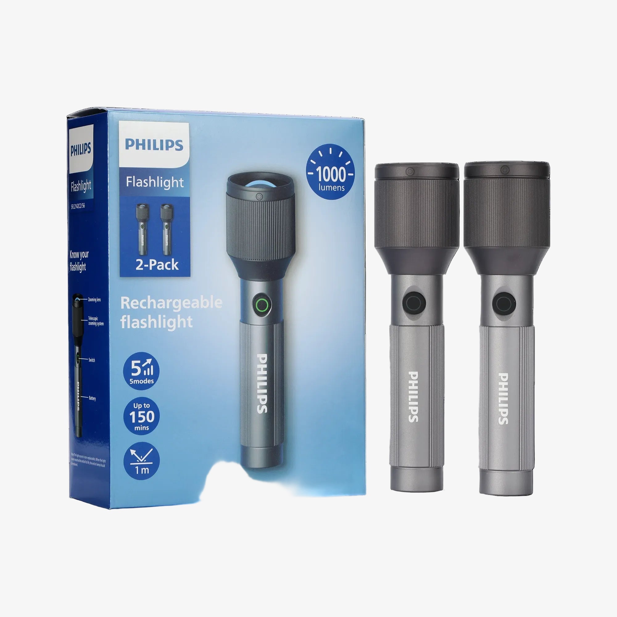 - Philips LED 24W Rechargeable Flashlight 1000 lumens 2 Pack SFL2142C2 Philips LED 24W Rechargeable Flashlight 1000 lumens 2 Pack SFL2142C2